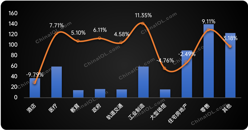 从细分应用市场的竞争格局来看,在保持整体稳定的态势下因宏观经济下行以及疫情波动等诸多因素的制约,部分细分市场出现了差异化开展动向。总体而言,在兼顾零售、房地产、工业制造等核心应用领域外,以医疗、轨道交通等为代表的热门应用场景竞争态势更加激烈。